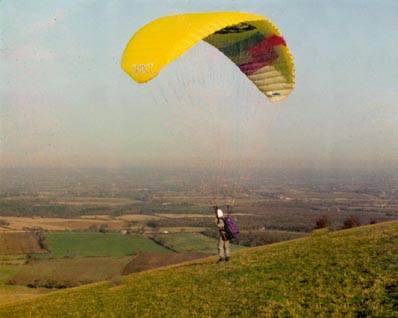 Paragliding at Devil's Dyke, Sussex Kit Airborne, and rising! Nikon F801, f8, 125th