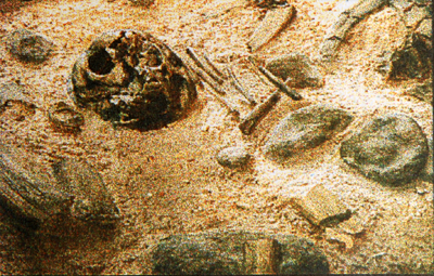 Neanderthal child's grave, 70,000 BC, reconstructed