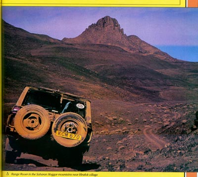 Kit's fifth, and final Range Rover to date was subjected to one of the toughest tests of all; a trip across the Sahara Desert. However , this vehicle was no rough and ready off-roader, but a Cassis coloured 1987 automatic Vogue Efi. Again the new levels of comfort, equipment, and refinement were way ahead of all the previous models, as was the price.