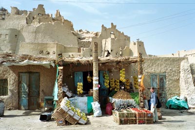 Fruit market below old citadel, Siwa