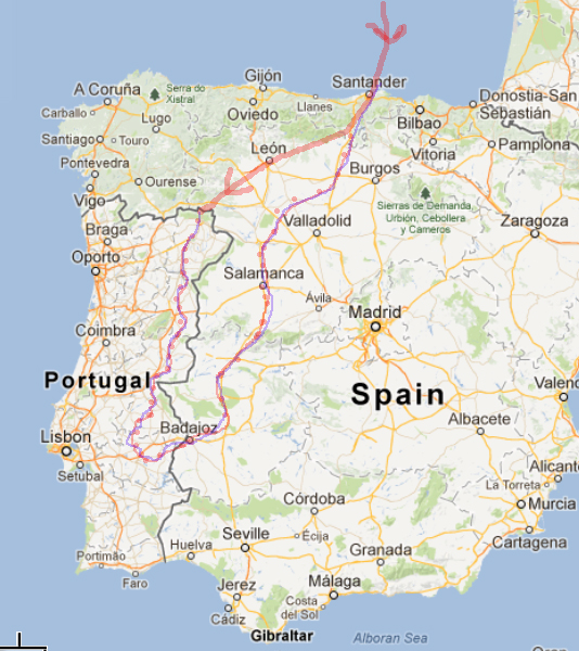 We take the Brittany ferry to Santander, then drive to Bragança, Portugal.