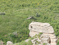 In the morning we set off along a ridge with the land falling away on either side. The view was spectacular. We passed a monastic ruin perched on a projecting cliff and reached the very pinnacle of the ridge and few miles further on.