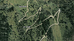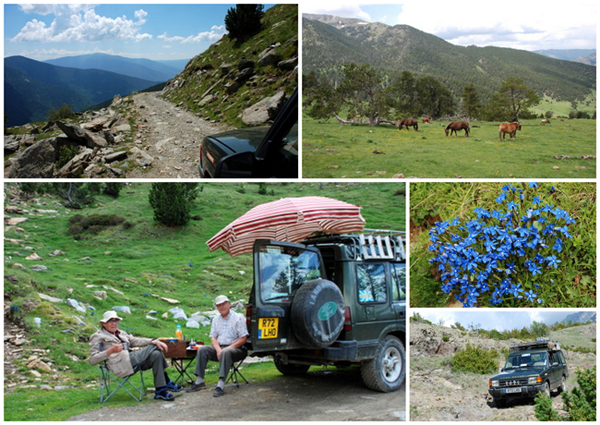 Then we drove to Vielha and started a long and exciting climb into the mountains which took most of the day. We drove up forest trails, river valleys and continued up beyond the tree line. Horses roamed free with their foals. At 6,000ft and snow was lying in pockets in sheltered cwms and ravines. After a great drive with several navigational challenges we reached our highest point at 7,000ft. There was a navigation mast at the peak and nearby a ski station, empty and unmanned at this time of the year.
