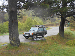 The route is tough and not for beginners, and we were sympathetically aware that there had been a fatality on this trail recently. There are 1:1 slopes to climb, steep descents where you nosedive into a river crossing. The rocks and boulders are concealed from view by turbulent water. The Discovery met the challenge with customary control using every ounce of movement in the independent suspension. I tackled each challenge at walking speed or less, in low range, 2nd gear, which gave me tremendous traction with enough revs to moderate speed as required.