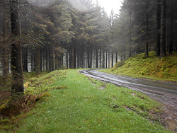 We emerged from the last ford dripping water and happy. We drove up the forested valley and reached a high crest and a delightful, unbroken view running off before us, all illuminated in the bright sunlight. A few more tricky scrambles round rocky promontories, clinging to the hillside and we arrived at Florida, the Abbey of Flowers. This was a Cistercian Monastery first established in 1164. The original site is now occupied by Old Abbey Farm, near Pontrhydfendigaid, which translates as ‘The Bridge of the Blessed Ford’.