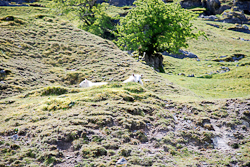 From crest to shore, sheep and their lambs grazed. We followed our little road down into the forest, up over rocky passes and then down to watery valleys with rivulets tumbling down the hillsides. The woods were filled with bluebells and the banks ablaze with other wild flowers, primroses, daisy, dandelions, buttercup, forget-me-nots. It was a wonderfully unspoilt expanse of verdant nature. We passed barely a single car all day and had this whole big area to ourselves.