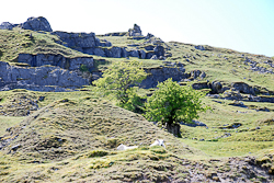 The castle was built on a sheer limestone promontory, a great bluff of rock that gave it a commanding view of the valley below. At the rear was a steep access path leading away from our car park. I set off up the path, leaving Raymond clutching his mug of elixir. When I returned I found Raymond asleep on his picnic table with a smile on his face. It seemed a pity to wake him.