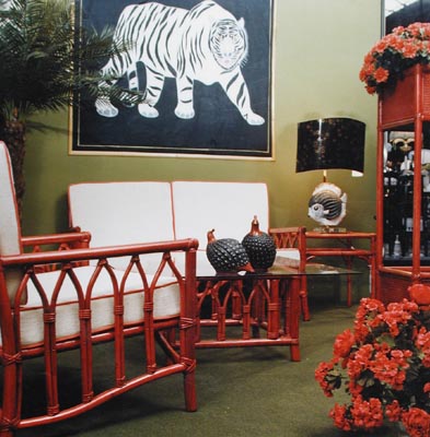 Tiger picture and cane furnishings, Earls Court exhibition Hasselblad, 40mm lens, Bowens lights, Ektachrome 64asa